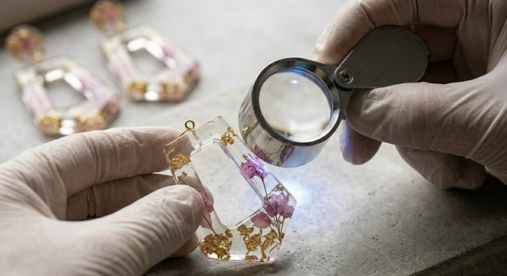 As handmade resin earrings become more popular, the market is flooded with low-quality “fast-resin” pieces. Use this checklist to ensure you are buying (or selling) a premium product: